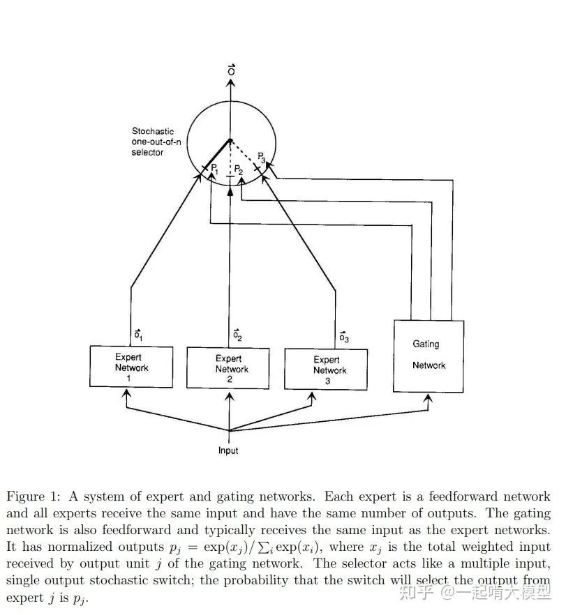 提前,使得每个专家模型单独计算损失函数,鼓励不同专家模型的竞争,使得每个数据样尽可能被一个专家处理。专家模型的竞争、合作,以及Gating Network的分发方式,也成为了MoE演进过程中不断更迭出新的方向。2017年MoE已初见成型。