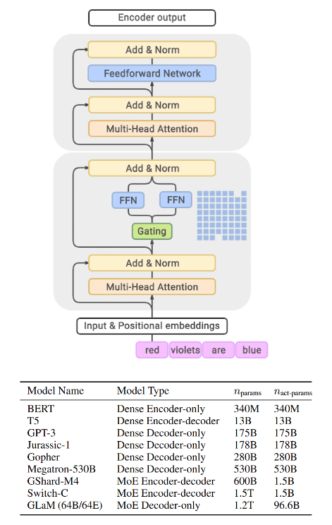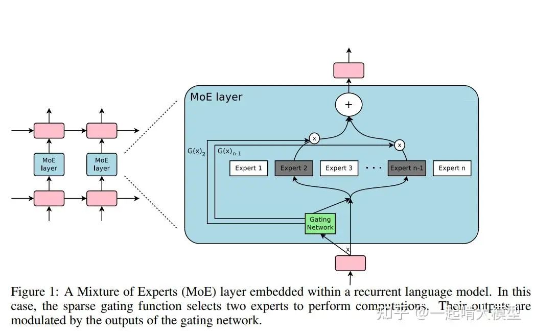 Google Brain的Shazeer,Noam,等人提出使用稀疏的MoE结构来将模型容量做大的方法,即:训练时使用海量的专家模型,推理时激活少数专家模型。