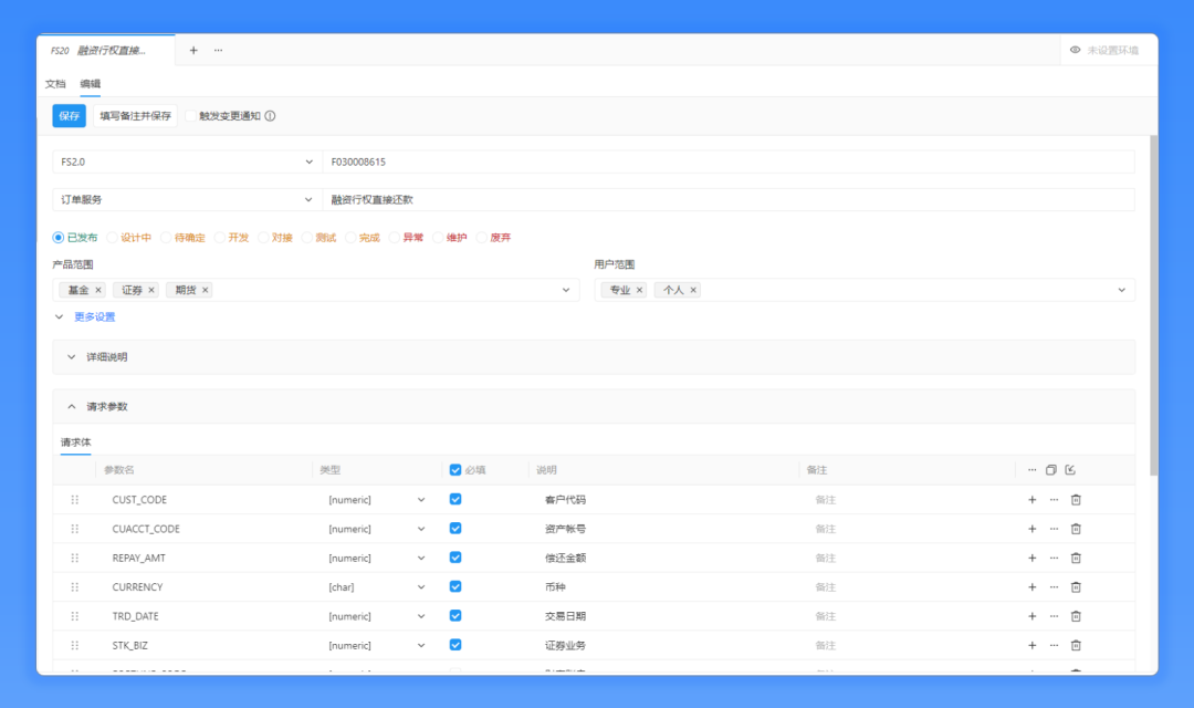 近期 Apikit (私有部署)进行版本迭代,现已支持证券行业 FS 2.0 协议的 Json 格式接口文档的解析导入、支持 FS 2.0 、恒生与中焯协议的文档编辑能力;同时该三种私有协议支持自定义字段功能,实现 API 接口治理能力的全面提升。