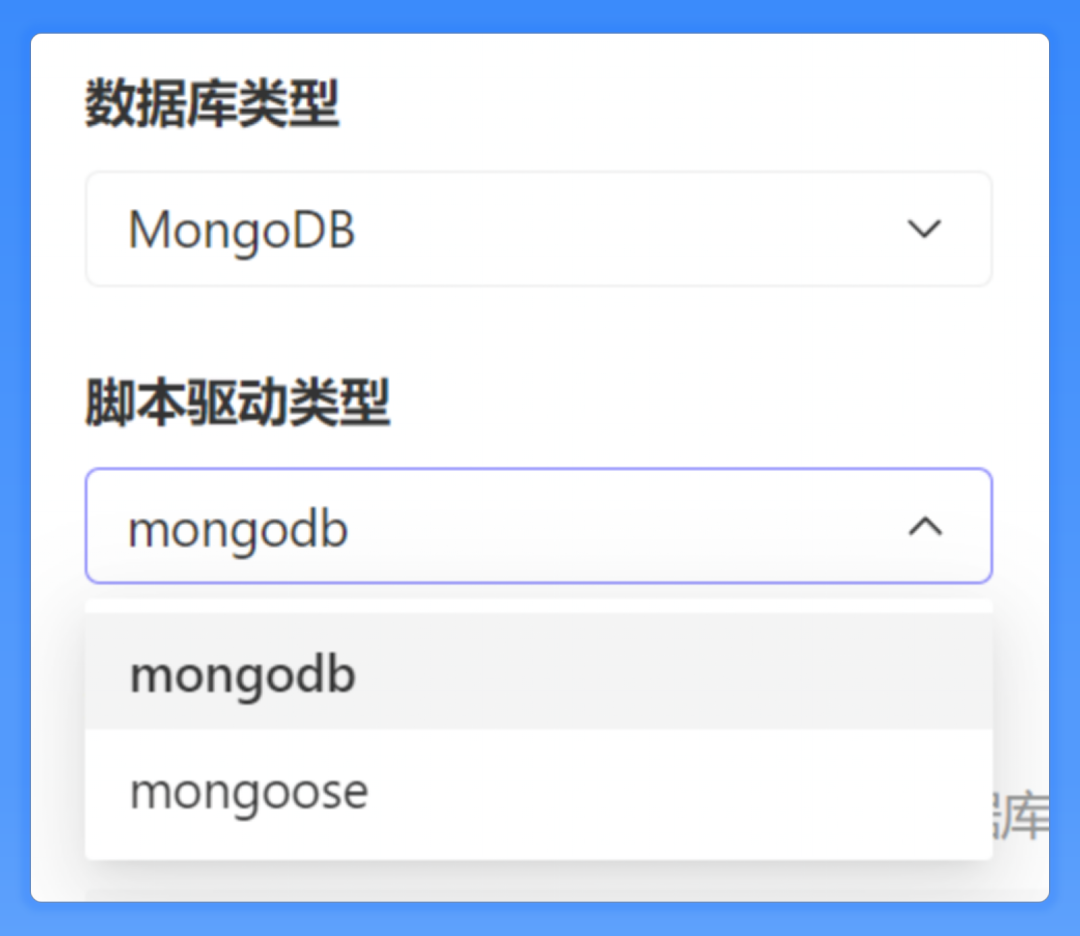 Apikit 新增支持“mongodb”和“mongoose”两种最主流的脚本驱动。用户可在不同的开发场景中选择最合适的数据库驱动类型,以获得更好的性能和适应性。