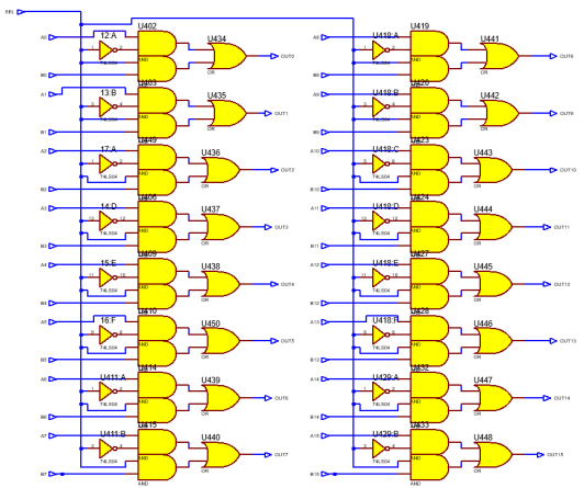 (2) 对于 i 从 0 到 15,执行操作:使用 1 位非门,输入为 Ai ,输出为 Outputi。