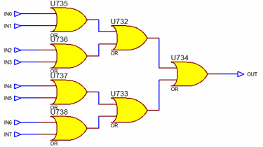 (6) 最后,使用 1 位或门,将这 2 个输出位进行或运算,得到最终的 1 位输出。