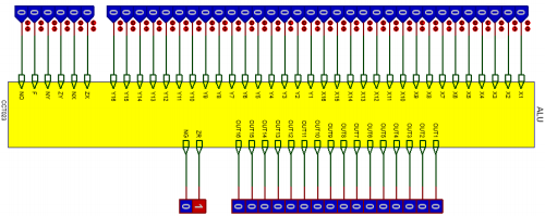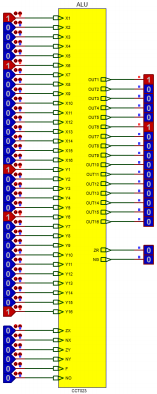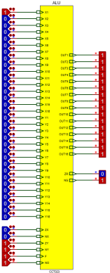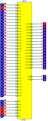 (3) 电路设计和仿真: 使用电路仿真软件进行电路设计和仿真。在设计过程中, 我们需 要考虑如何使用电路元件(例如, 与门, 或门, 非门, 复用器等) 来实现 ALU 的功 能。在仿真过程中,我们可以观察电路的工作情况,验证我们的设计是否正确。