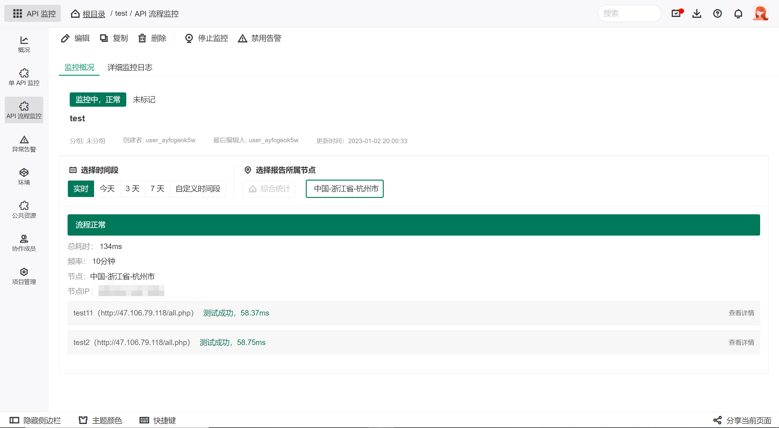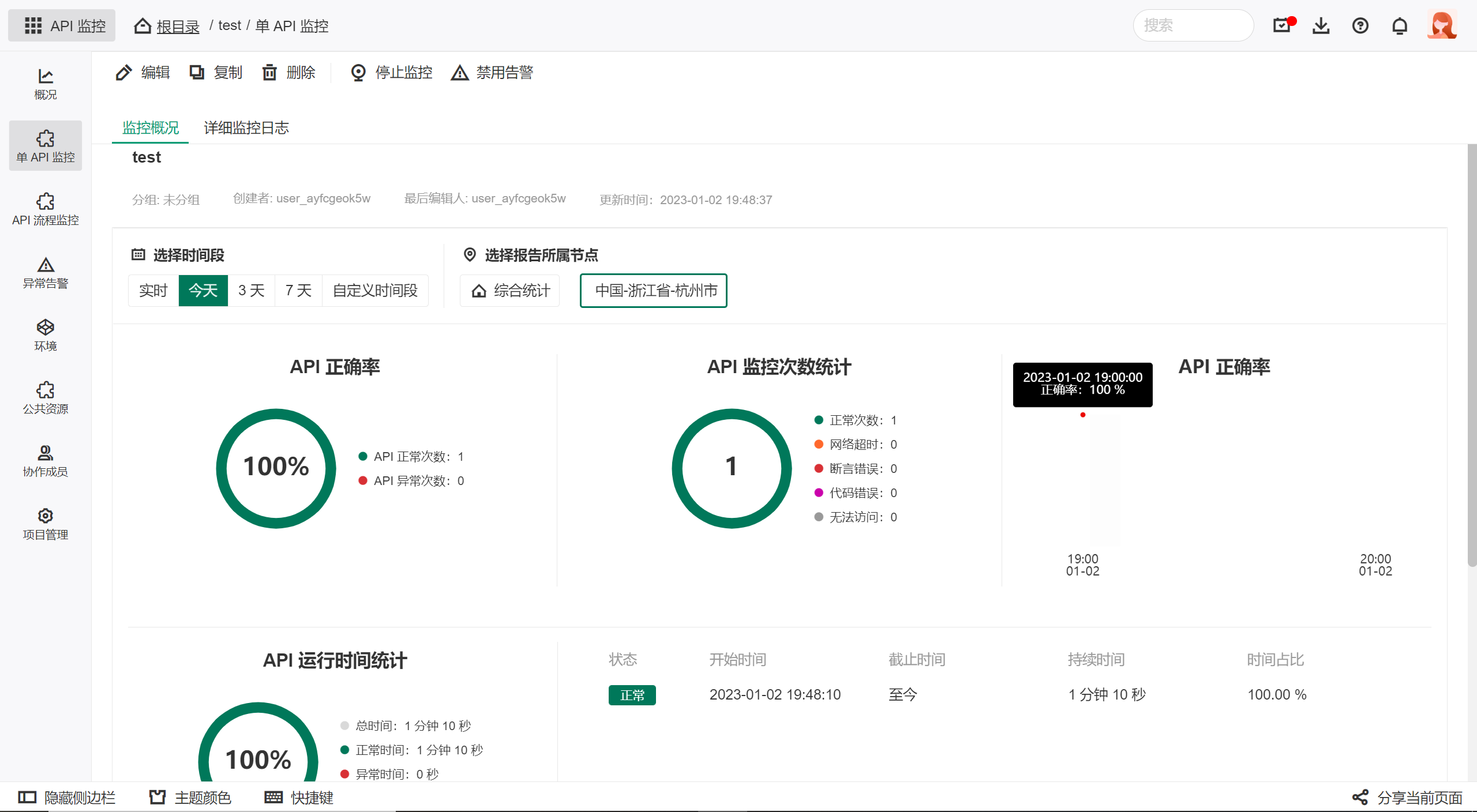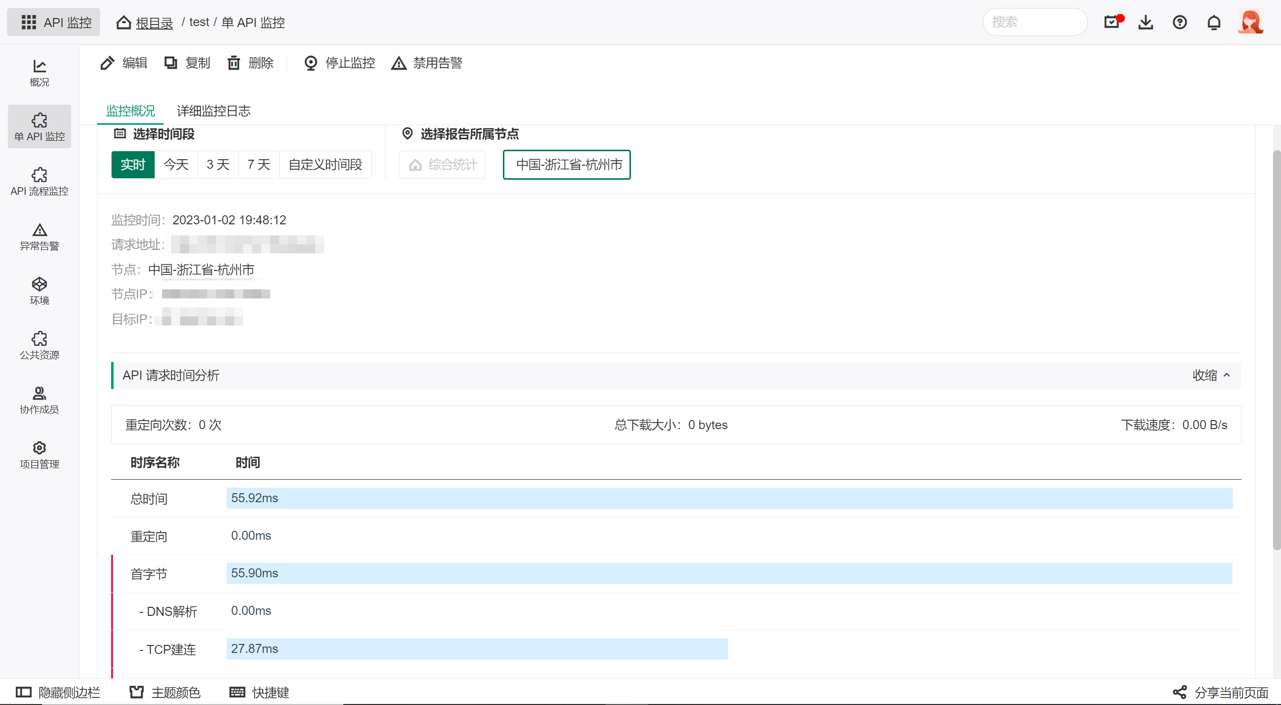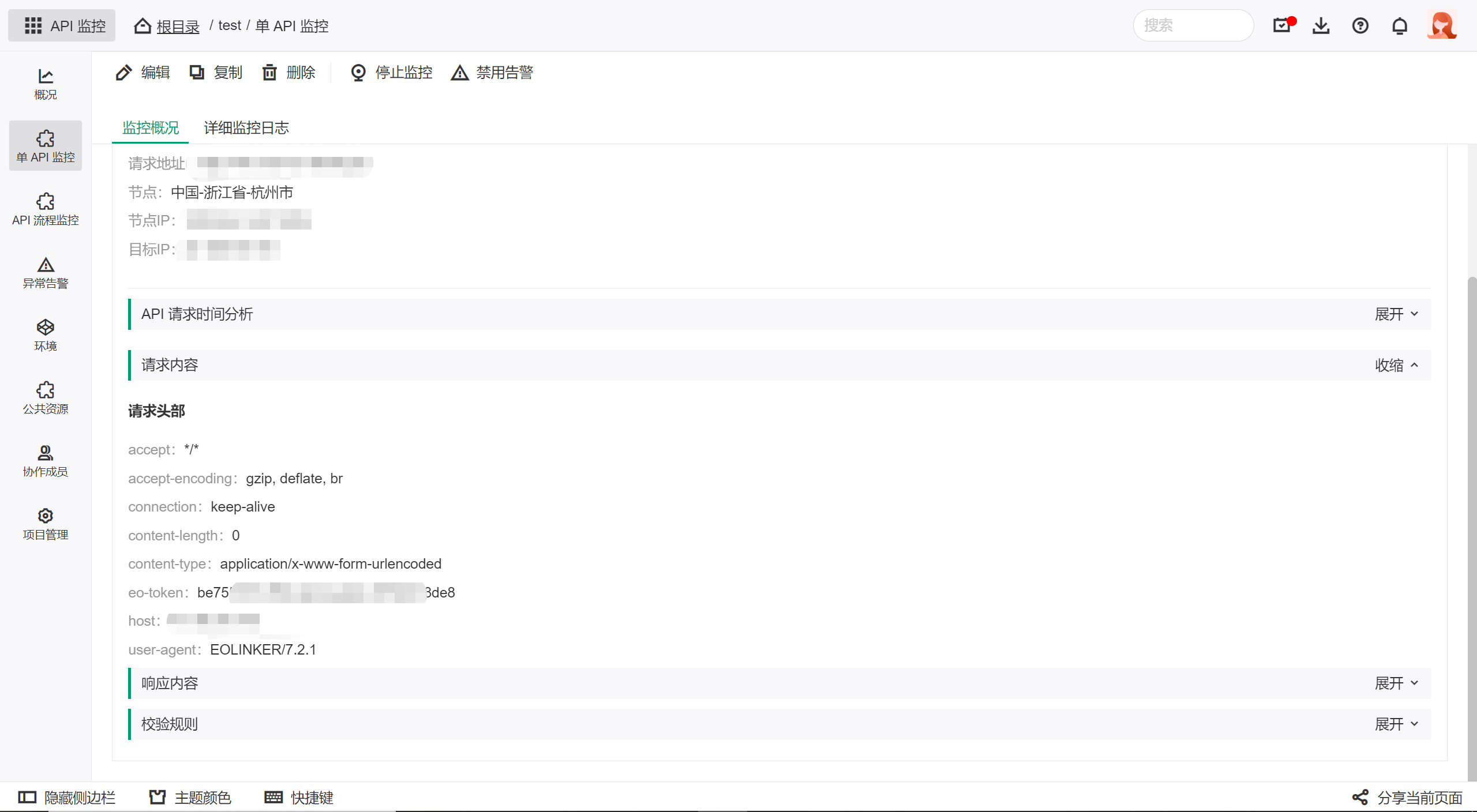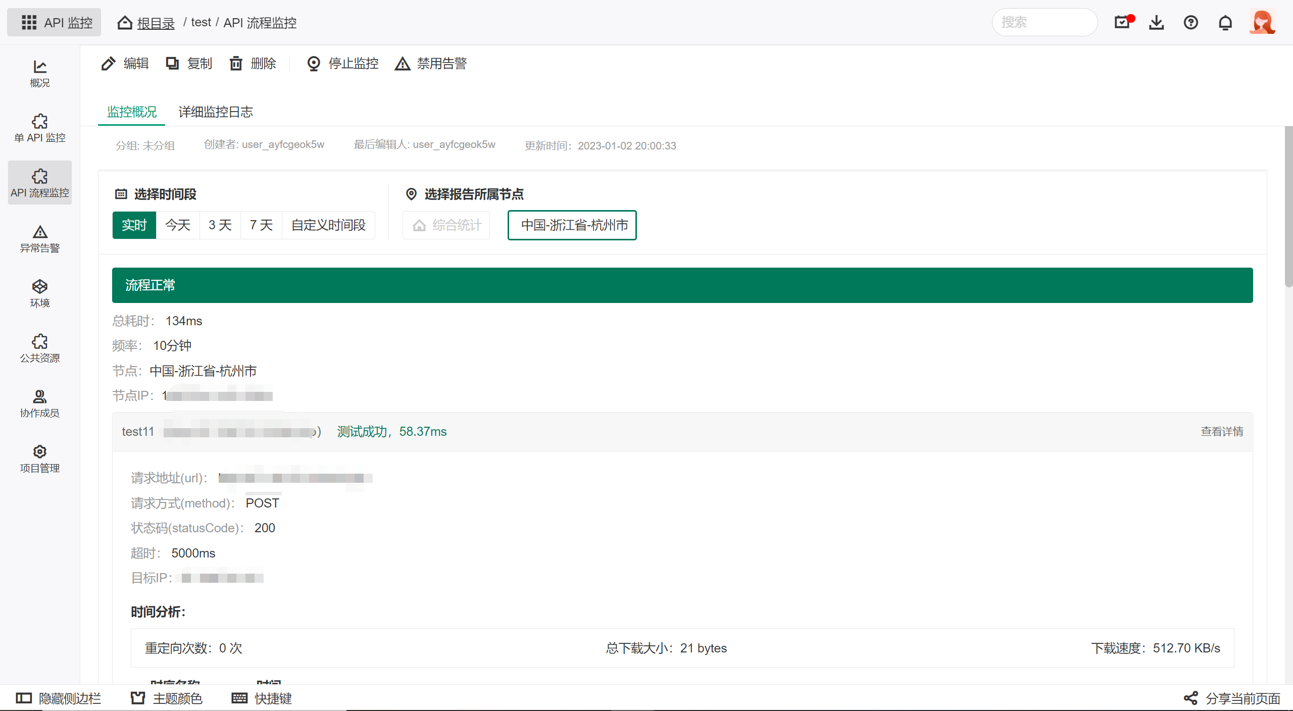 - API 基本信息:API 请求地址、监控状态、监控节点IP地址、监控状态等;