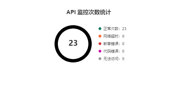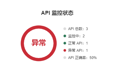 API 监控状态图表会显示当前项目内的 API 总数、监控中的 API 数量、正常API、异常API以及整体API正确率数据。
