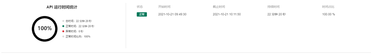 如果当前选中的时间段内有API出现了异常,则图表显示API监控状态为异常,否则为正常。