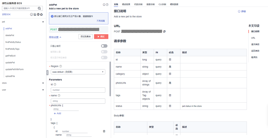 API Portal将为企业开发者提供标准化API文档在线查看、API可视化在线调试、代码示例/CLI示例快速生成等开放能力,帮助开发者基于请求参数/请求示例、响应参数/响应示例、调试结果错误码等信息实时调整参数,提高API调试效率。在调试完成后,开发者可直接拷贝代码示例到工程中,并根据自身需求对示例代码更改,实现应用快速开发。