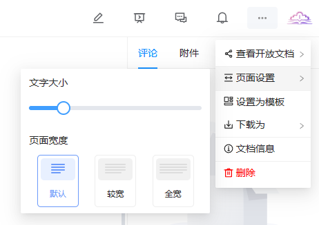 在文档右上角操作区包含有各种功能操作按钮,针对单个文档的查看和管理更加方便快捷。
