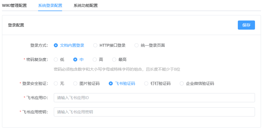 系统登录支持文档内置登录、SSO登录接入,可管理控制账号的密码复杂度,登录安全验证支持图形验证码、飞书、钉钉、企业微信的安全校验码,对于员工账号的登录安全做到最可靠的控制。
