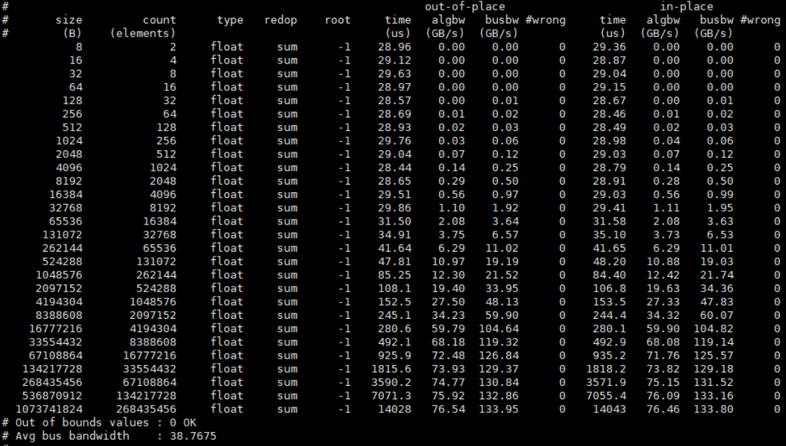 /root/nccl-tests/build/all_reduce_perf -b 8 -e 1024M -f 2 -g 8