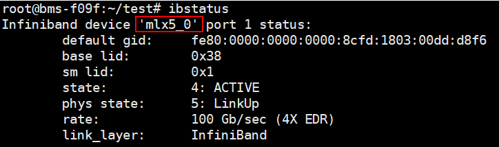 (2) 执行ibstatus查询IB设备,并记录IB设备名
