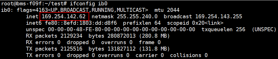 (4) 执行ifconfig [IB的网络设备名]获取IB网卡的IP地址,并记录IP地址