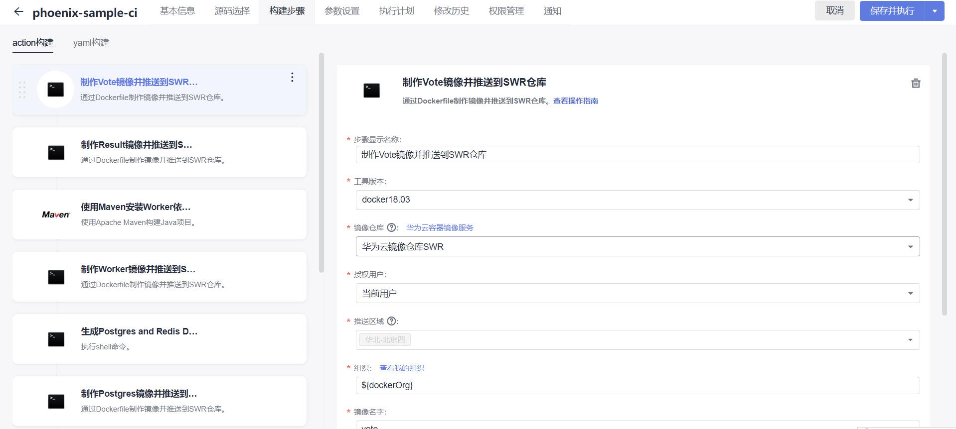 创建 "编译构建任务",完成应用的 Docker 镜像打包以及推送。何启动持续集成,实现代码变更后自动触发应用的 Docker 镜像打包以及推送。使用华为云提供的"开源镜像站"服务提高依赖包获取速度,提高自动化编译效率。