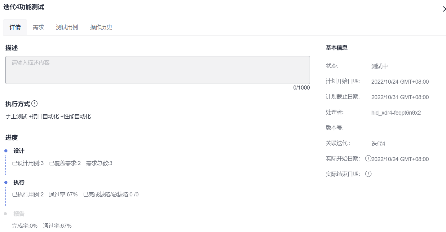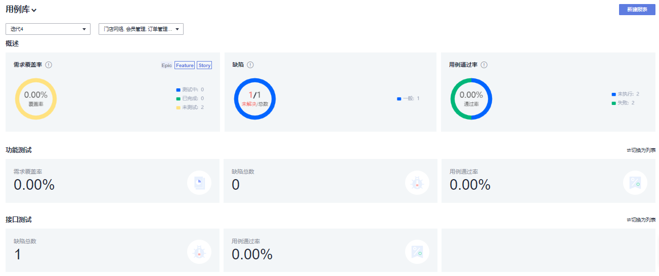 可查看此迭代的需求覆盖率、缺陷、用例通过率等相关统计。