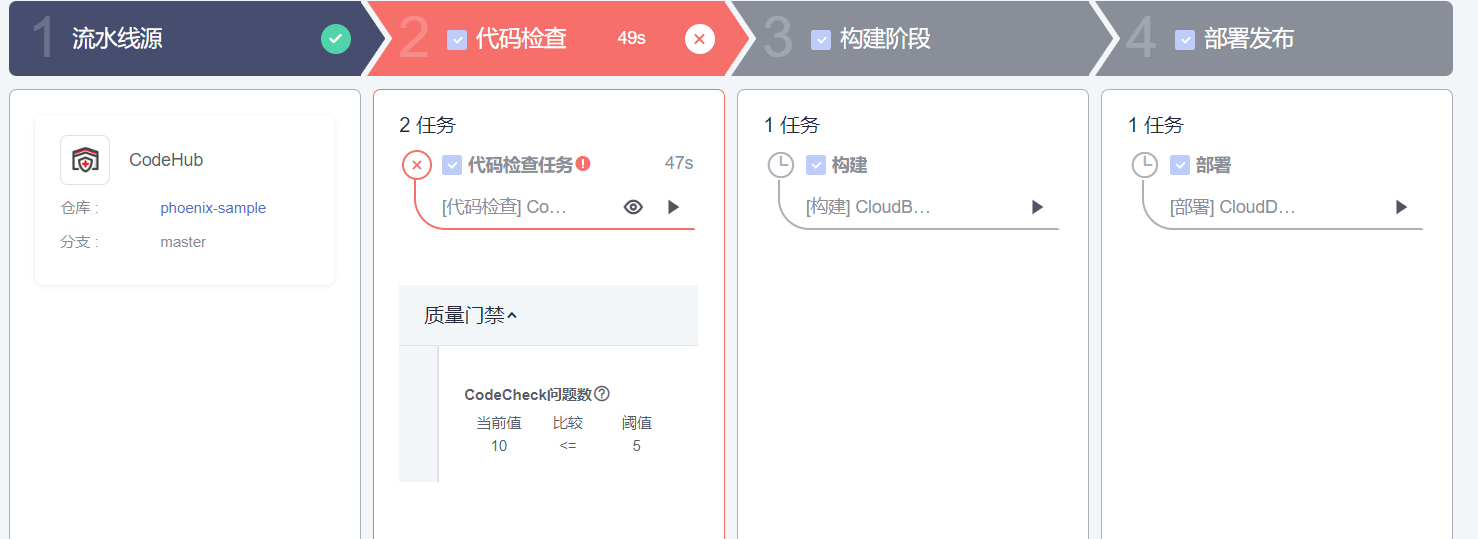 为了控制代码的质量,要求代码必须经过扫描,并且错误数量控制在合理范围内,才允许发布。通过添加质量门禁可以有效的自动化控制流程。