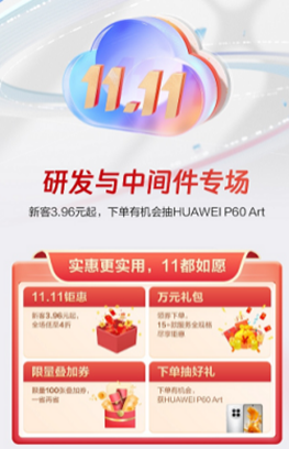 现新客3.96元起,下单有机会抽HUAWEI P60 Art,福利仅限双十一,机会唾手可得,立即行动!