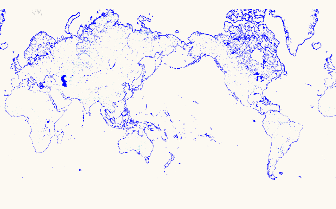 数据引用:Jean-Francois Pekel, Andrew Cottam, Noel Gorelick, Alan S. Belward, High-resolution mapping of global surface water and its long-term changes. Nature 540, 418-422 (2016). (doi:10.1038/nature20584)