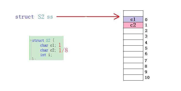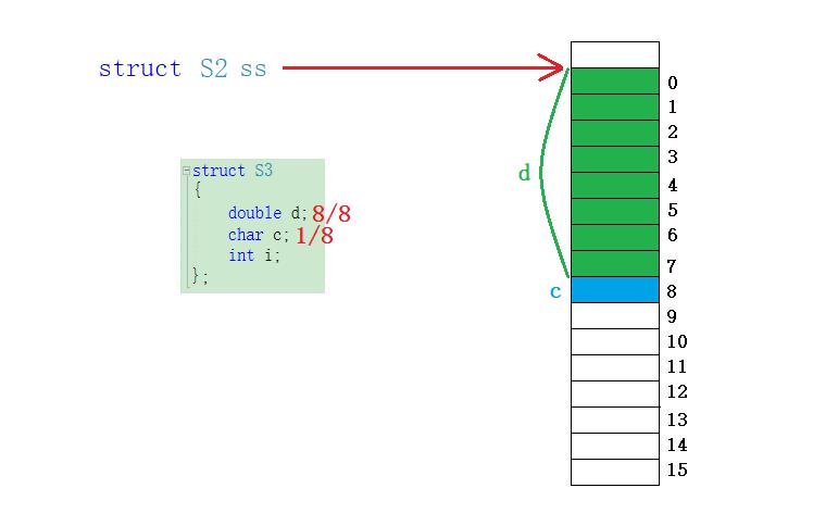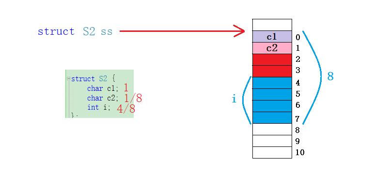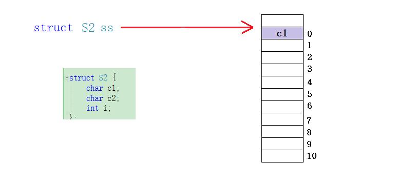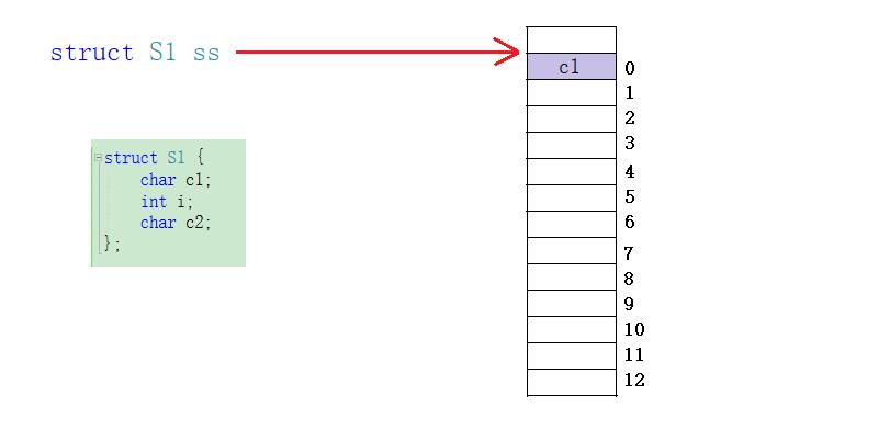 c1放在这个与结构体变量偏移量为0的地址处,而且它的类型还是char,所以只占1个内存单元