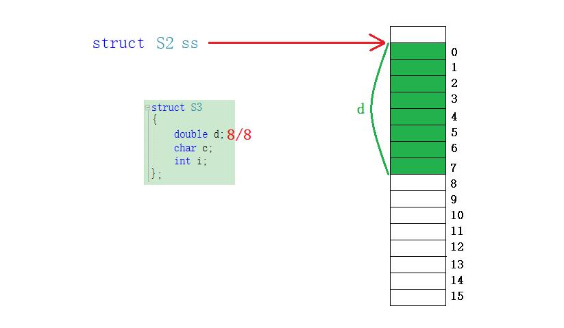 ss,它的起始地址就从0开始,所以根据第一条规则,第一个成员变量在与结构体变量偏移量为0的地址处,而且它的类型还是char,所以只占1个内存单元