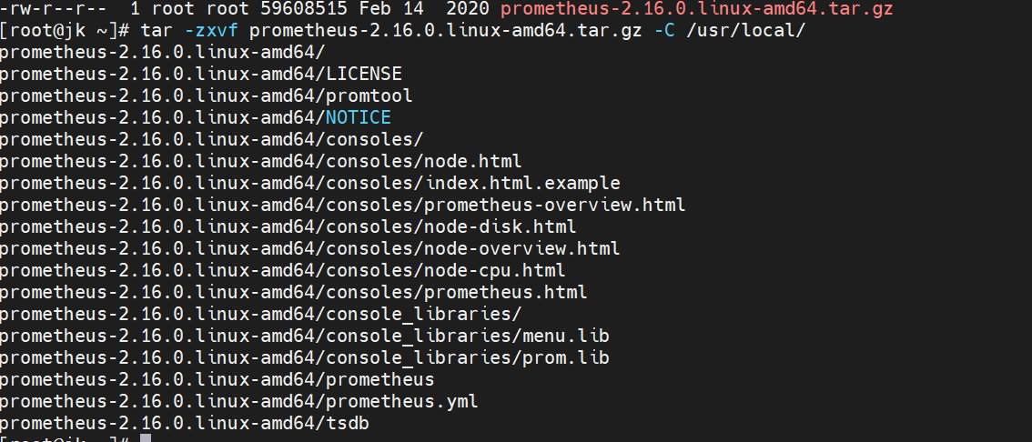 tar -zxvf prometheus-2.16.0.linux-amd64.tar.gz -C /usr/local/