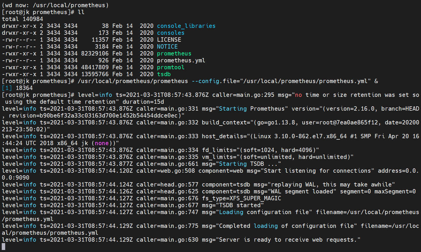 /usr/local/prometheus/prometheus --config.file="/usr/local/prometheus/prometheus.yml" &
