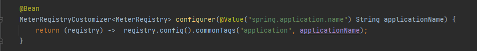 MeterRegistryCustomizer<MeterRegistry> configurer(@Value("spring.application.name") String applicationName) {