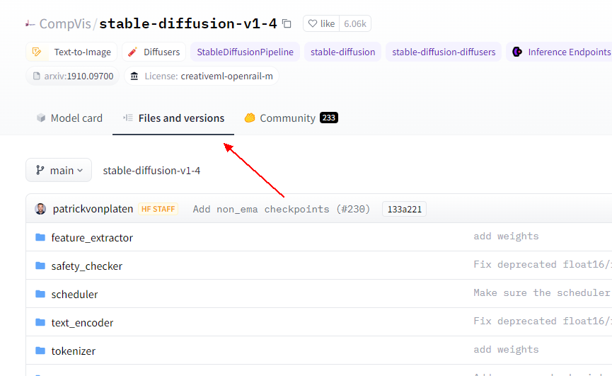 因为是增量训练,所以需要下载基础模型。这里选择:stable-diffusion-v1-4 为例
