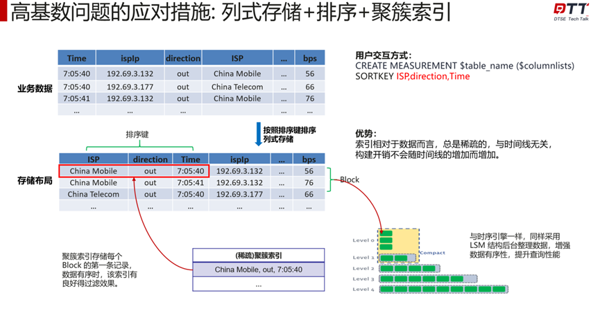 openGemini目前解决该问题应对措施为:列式存储+排序+聚簇索引。