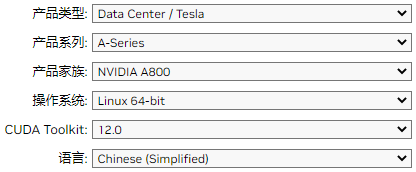 上部分安装NVIDIA驱动是根据CUDA12.0选择的安装包, 因此本部分默认就安装CUDA 12.0