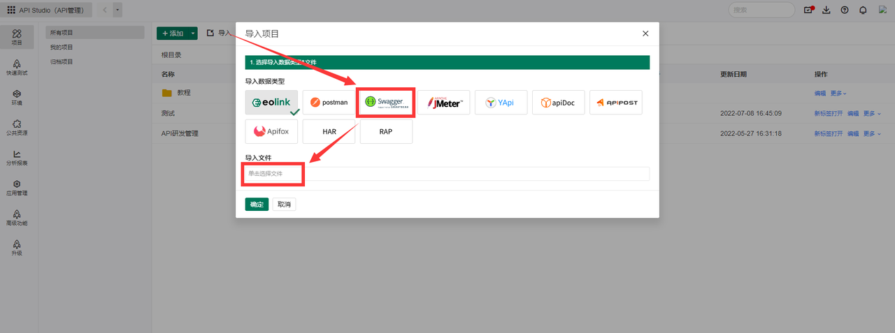 - 进入Eolink Apikit,选择导入从Swagger导出的Json文件