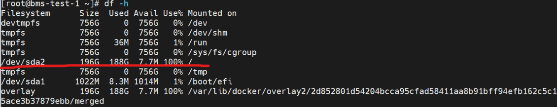 在训练时往往需要将训练中间结果记录为checkpoint保存在磁盘中,华为云昇腾Snt9B裸金属服务器默认自带200G的系统盘,使用df -h命令查看磁盘使用率,可以看到系统盘已被写满,该报错是由于磁盘容量不够保存checkpoint文件导致的。