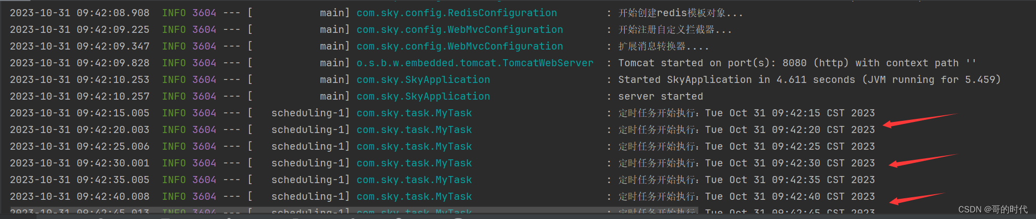 @Scheduled(cron = "0/5 * * * * ?") //指定任务什么时候触发