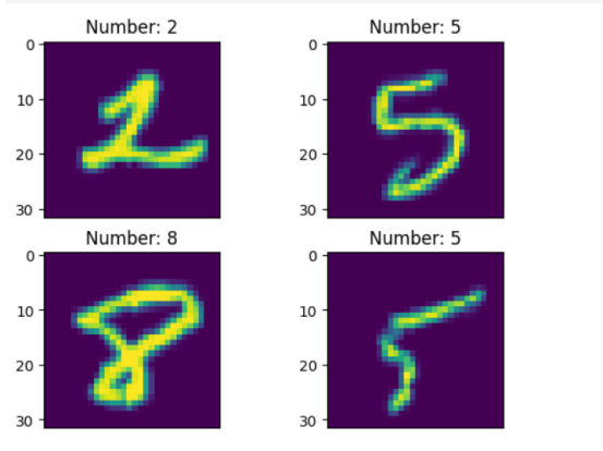 如图所示,显示了4张大小为32x32的手写数字。