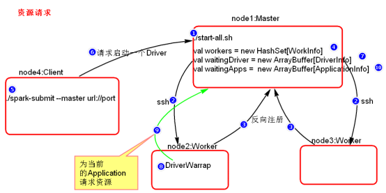 - 注册Driver Endpoint,向Master注册Application