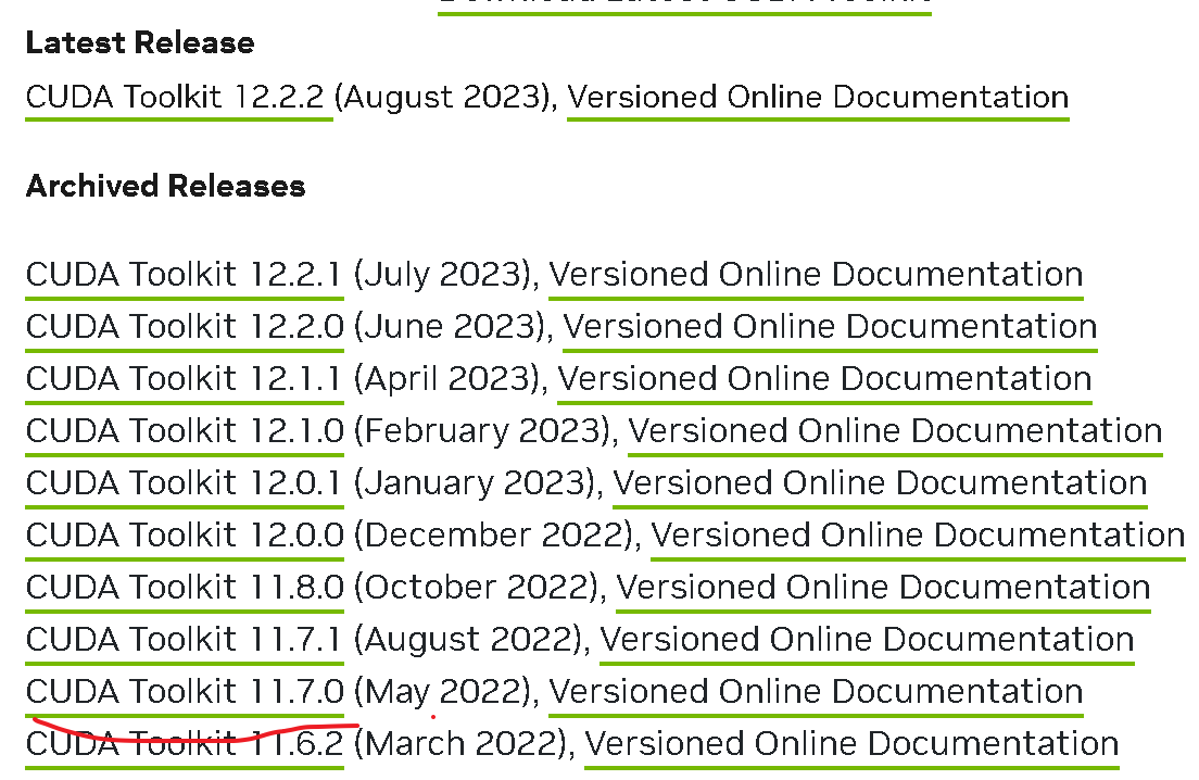 (2)根据显卡驱动版本号下载对应的CUDA版本