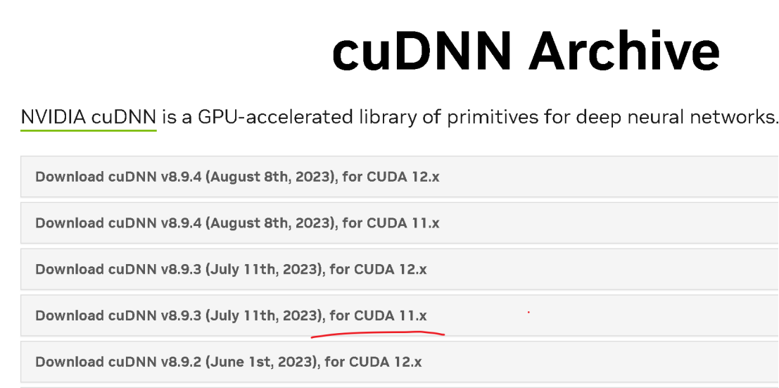 小编电脑安装CUDA11.7,因此下载对应的cuDNN版本,下载地址: https://developer.nvidia.com/rdp/cudnn-archive