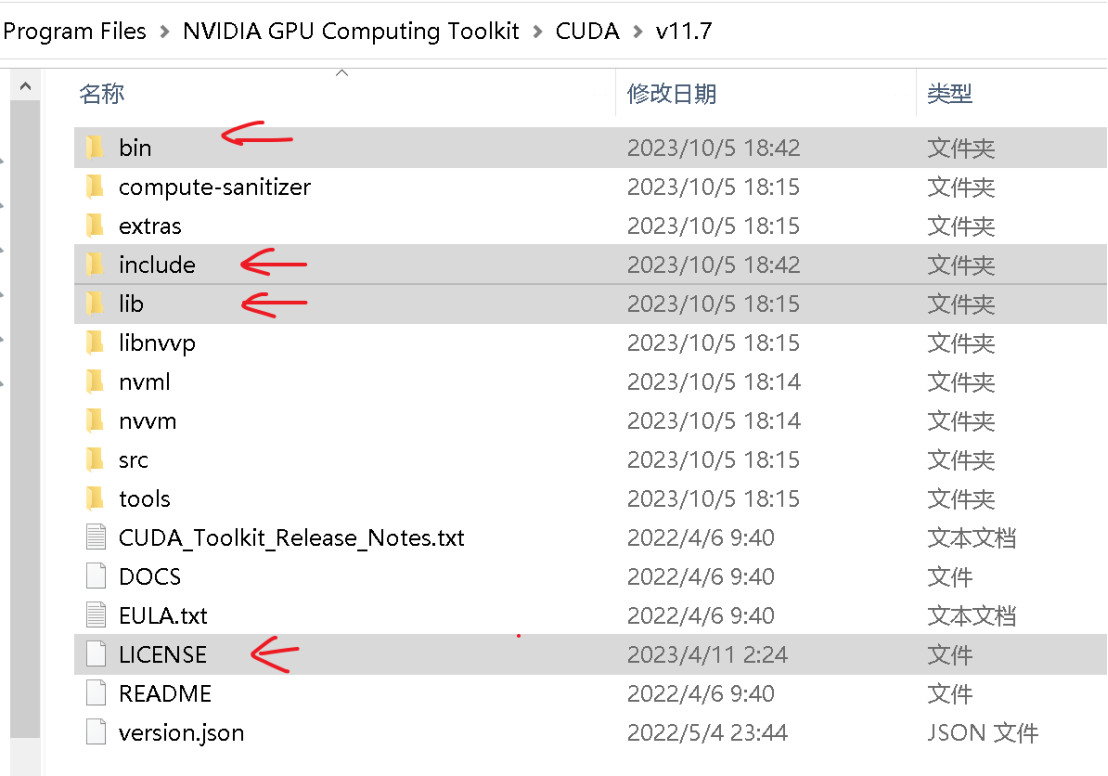 (小编目录为C:\Program Files\NVIDIA GPU Computing Toolkit\CUDA\v11.7)下面即可。