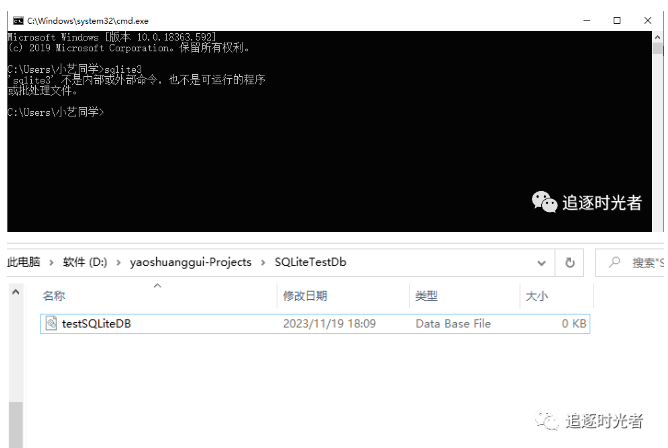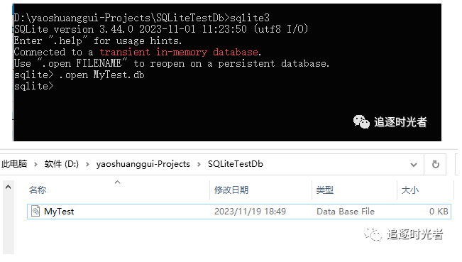 输入以下命令来创建一个新的数据库文件(例如MyTest.db):