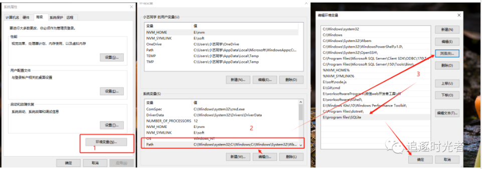 我的电脑右击=>属性=>高级系统设置=>高级=>环境变量=>系统变量=>Path=>编辑,将SQLite地址文件夹地址添加进去;