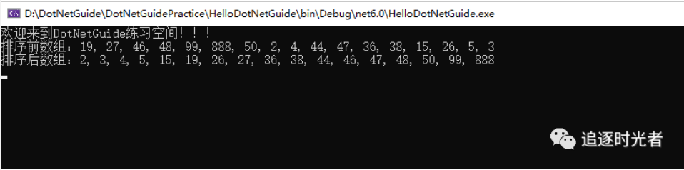 Console.WriteLine("排序前数组:" + string.Join(", ", array));