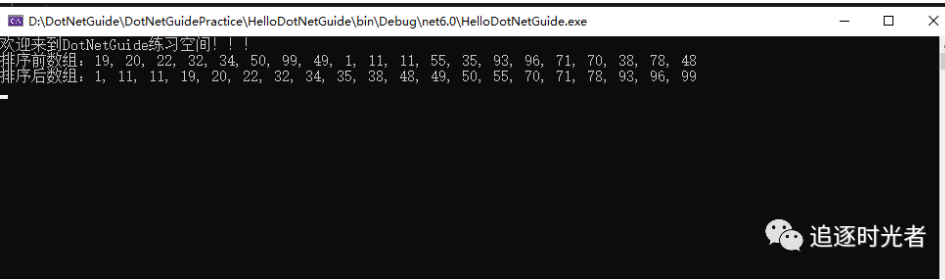 Console.WriteLine("排序前数组:" + string.Join(", ", array));