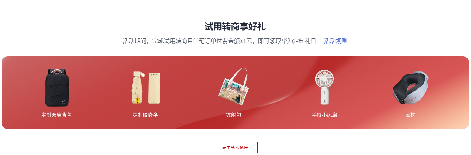 现在下单0元试用规格并转商,即可参与华为云云商店11.11活动,领取精美定制礼品,“实惠更实用,11都如愿”!