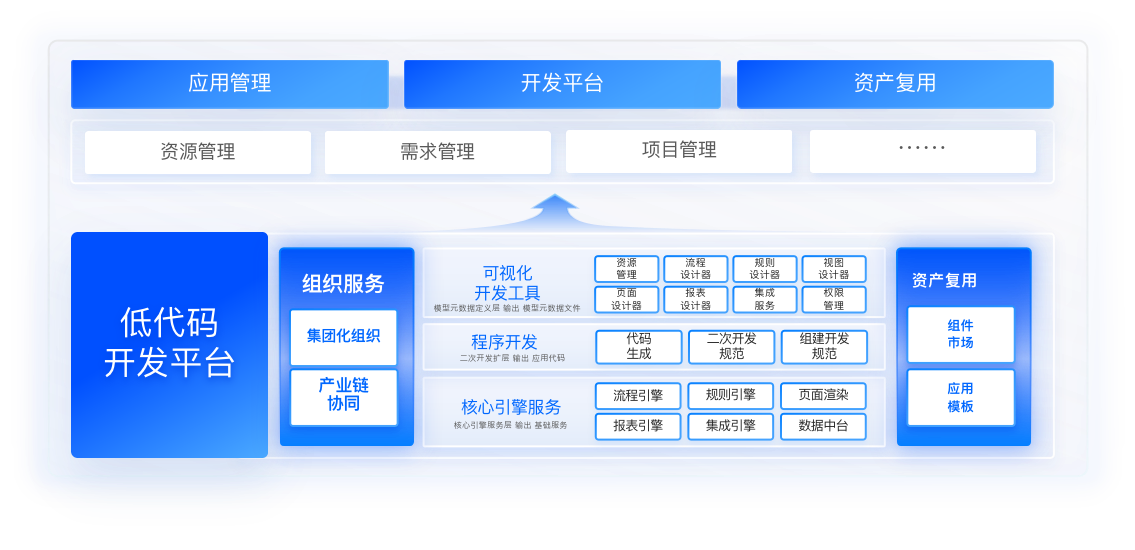 该行以低代码为引擎,构建了全新的敏捷应用开发平台,实现应用快速开发、持续集成、部署上线和运维全过程监控;同时,通过统一平台沉淀研发资产,实现研发资产可复用,最终节约研发成本,提升研发对前台业务的响应效率。