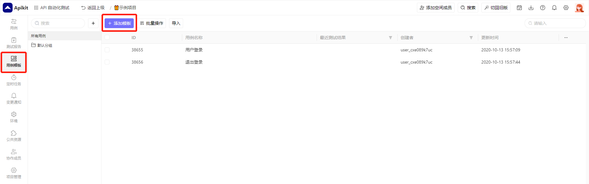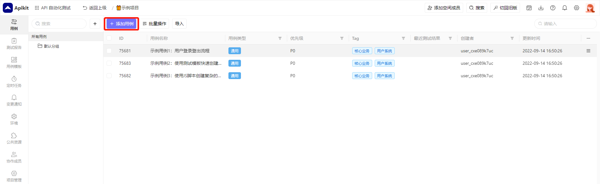 添加普通用例