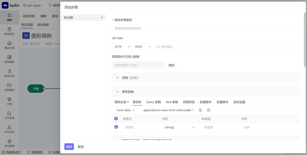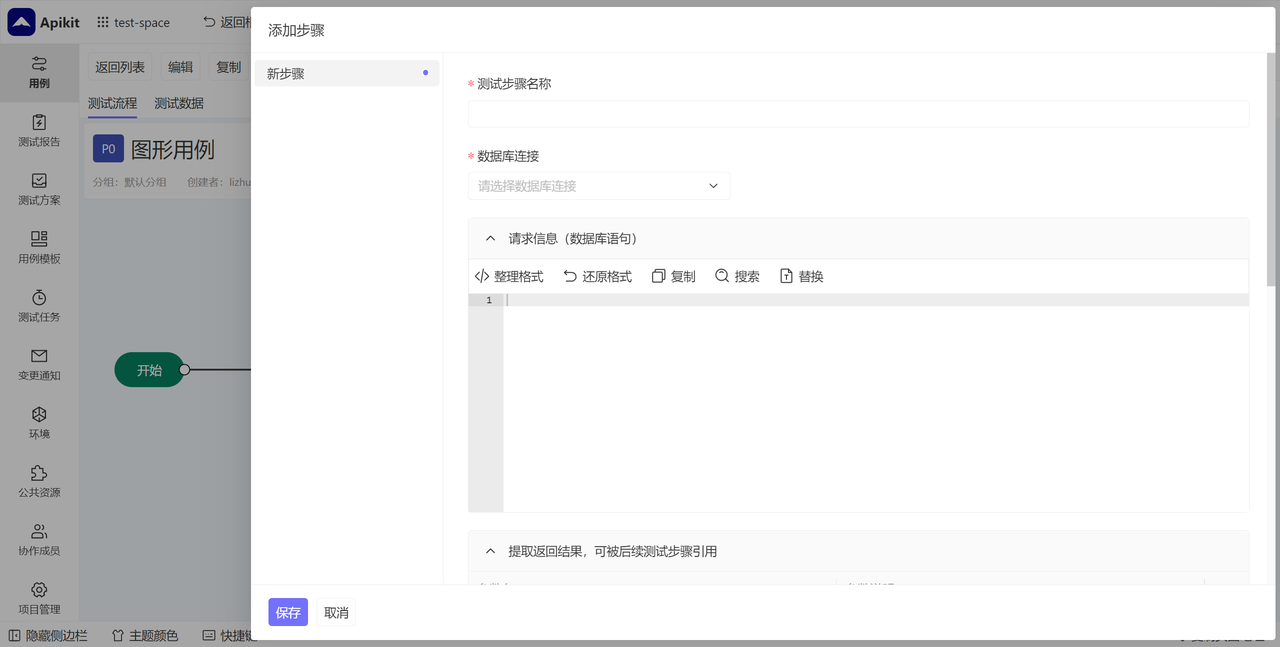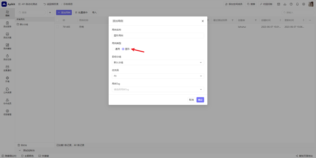 进入测试用例管理页面,点击 添加用例 按钮,在弹窗中输入用例名称等信息,选择图形用例,然后点击确定即可。