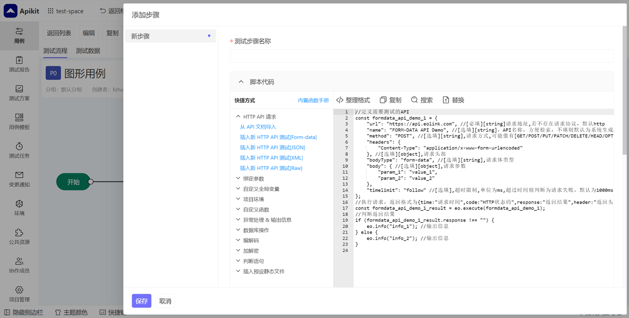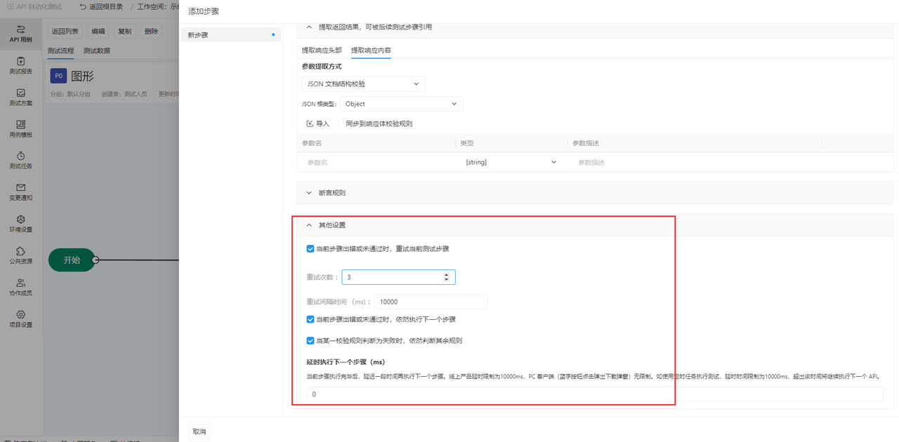 测试用例添加测试步骤时,添加API请求、添加脚本、添加数据操作支持重试功能