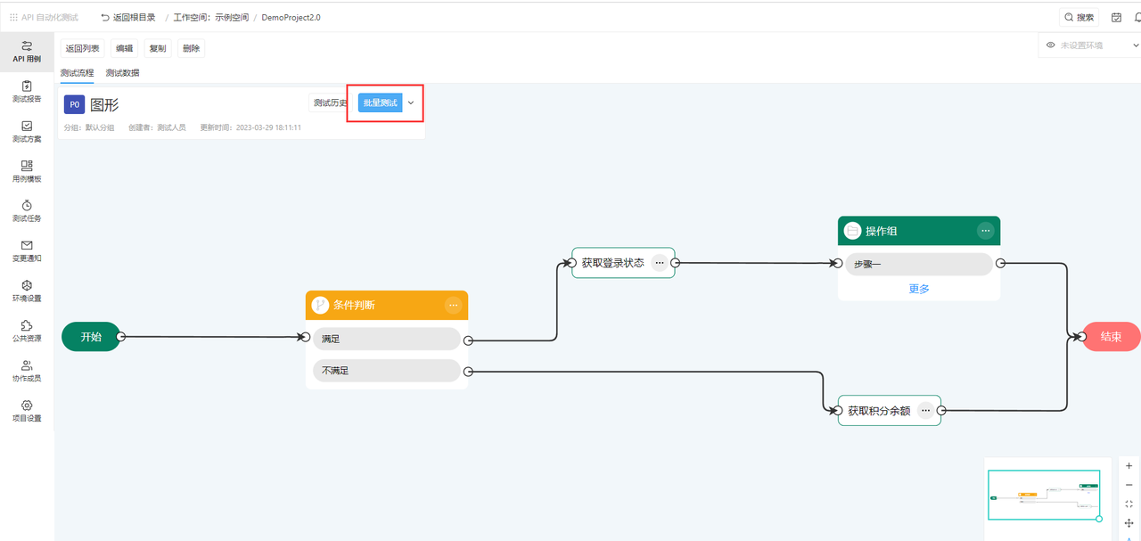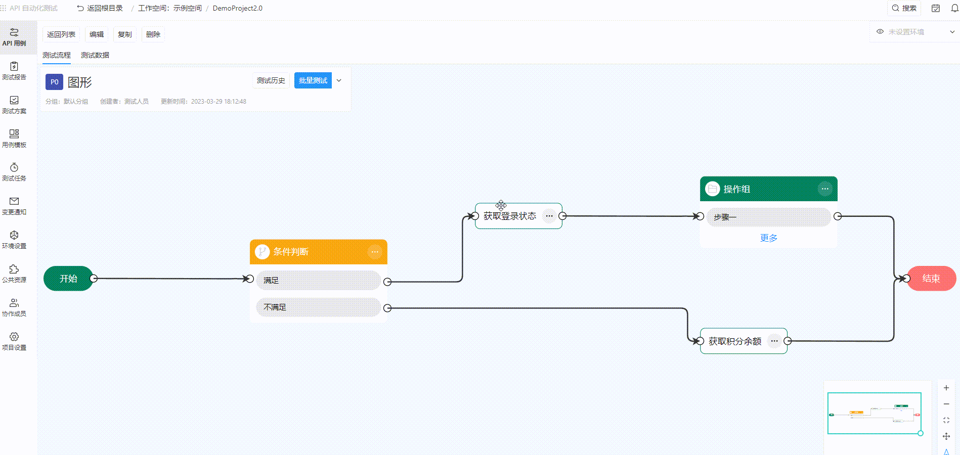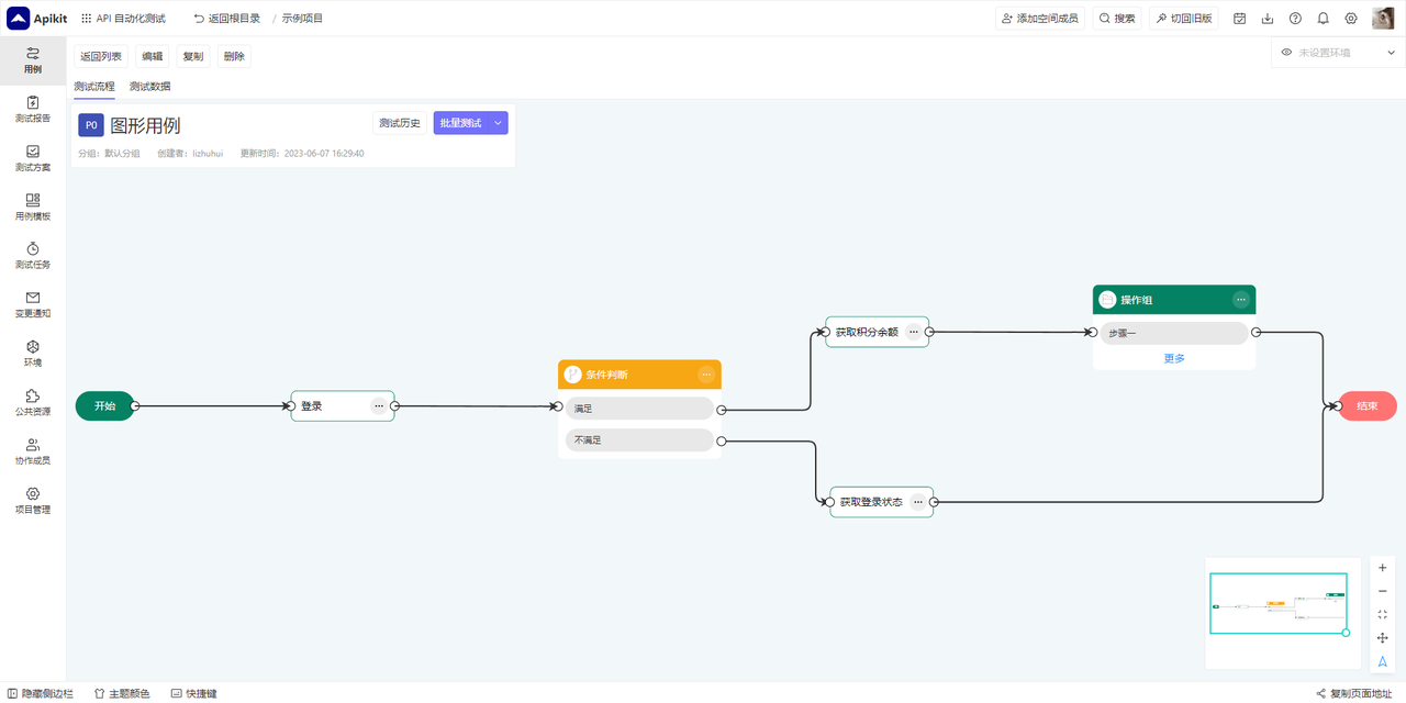 相较于前面推荐的表格化的通用用例,图形用例可以让测试人员更方便地设计和管理 API 流程测试,同时也更加的灵活。