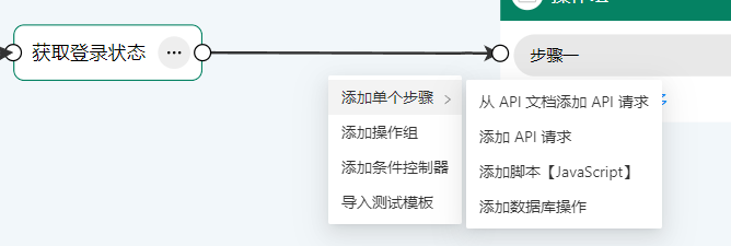 选择从API文档添加请求,选择API文档中的项目和接口,并且把接口加入到流程中: