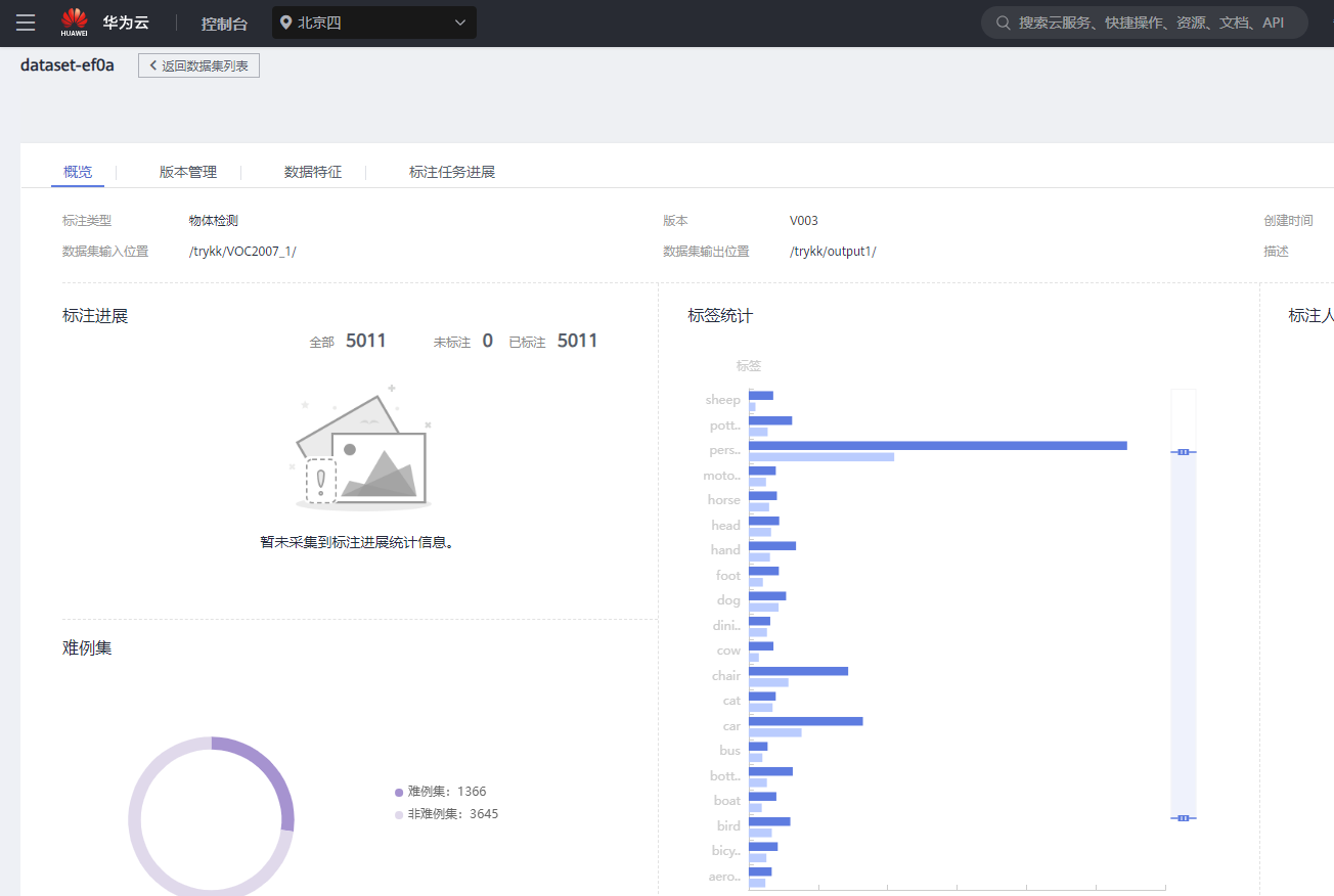因此,在模型训练前,我们在华为云ModelArts平台上,通过自动与手动相结合的方法进行数据标注,并手动对标注错误的数据进行进一步更正,之后将其分成训练集和测试集。