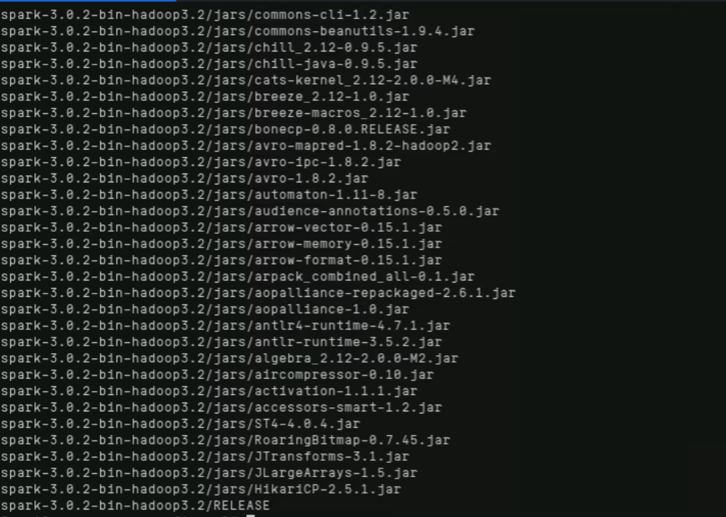 tar -xvzf spark-3.0.2-bin-hadoop3.2.tgz -C /usr/local/bigdata/